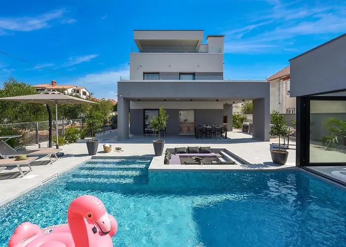 Villa Opal i Zadar er en 5 værelses indkvartering med en terrasse og udsigt over havet. Feriehus har 5 badeværelser og et udstyret køkken.